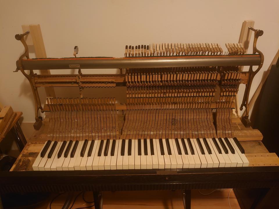 With this step, the action was roughly ready, and I could move on to the sound section. Looking back, I think I could have gotten a better piano, but the good thing is that I learned a lot from repairing the action.