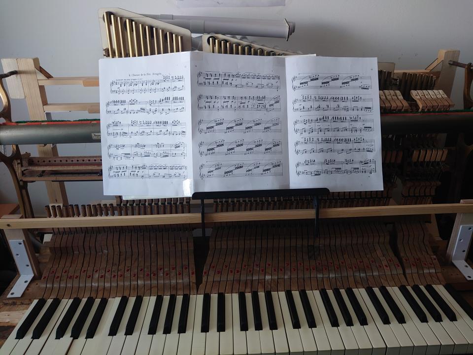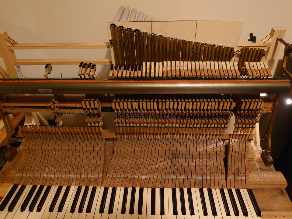 These tones, of course, could no longer fit side by side above the keys like the other octaves, so I had to come up with a more original solution.